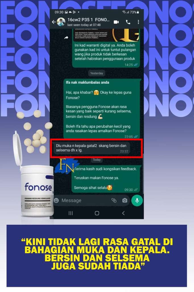 Fonose. Tak perlu bimbang, sekiranya sudah amalkan tetapi tidak berkesan HQ akan pulangkan 100% wang