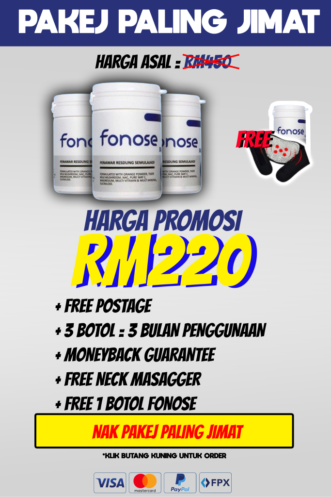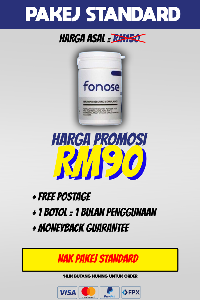 • Tetapi saranan kami untuk anda terus konsisten mengamalkan pemakanan Fonose ini kerana produk ini bukan hanya memfokuskan kepada masalah Resdung sahaja tetapi boleh menembuhkan penyakit-penyakit lain kerana telah